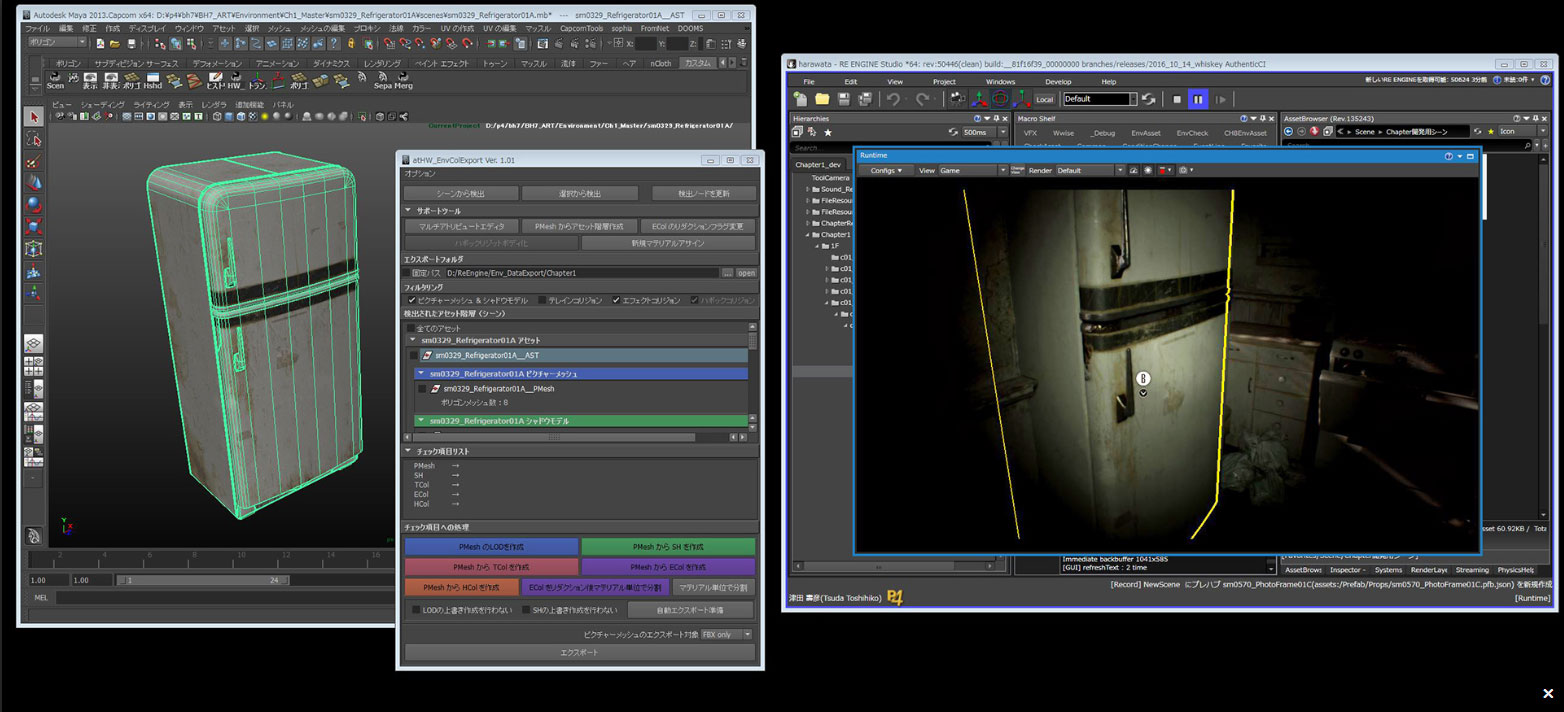 In-house tools have also been created for exporting files into the RE Engine, such as an asset exporter for Autodesk Maya.
